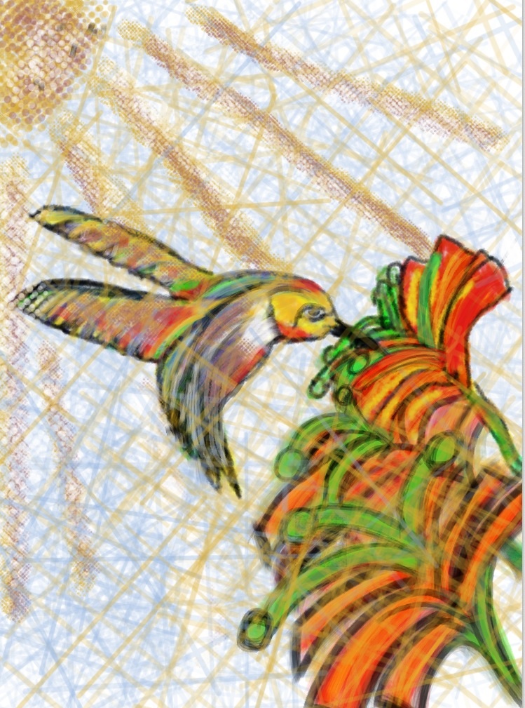 My digital painting inspired by Mira, who loves hummingbirds!