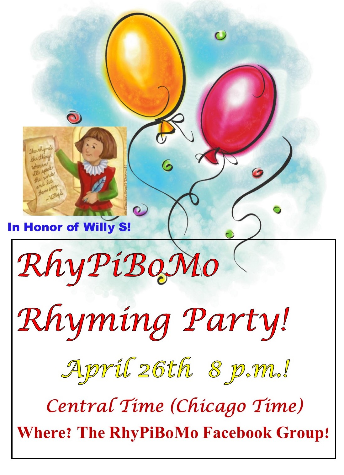 I really do need your help and feedback so RhyPiBoMo will grow and continue to help writers. I do want to emphasize that I never intended to make money on this event. That is still not my goal but I did learn that it costs money to host an event and run contests. So, I have asked for advice from several authors who use their blog as a platform for their writing and to help others. It was suggested that I try to generate some income so that this new venture will grow…I would LOVE to offer a Saturday or weekend RhyPiBoMo workshops…That would be the ultimate best because I would actually get to meet you all!